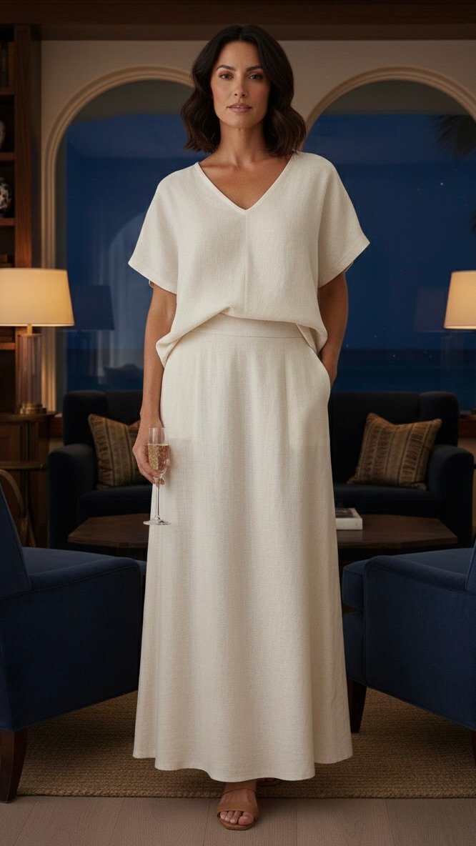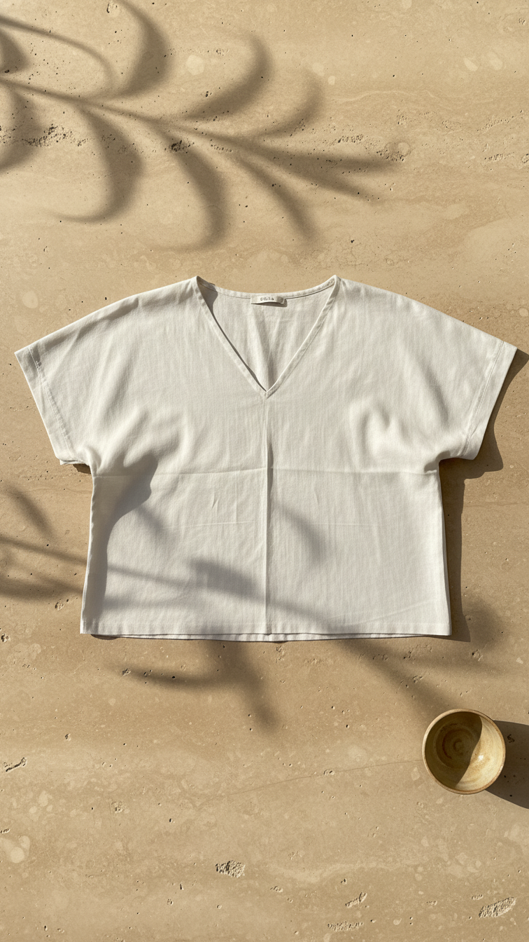Polo Lino Cuello V- Crema