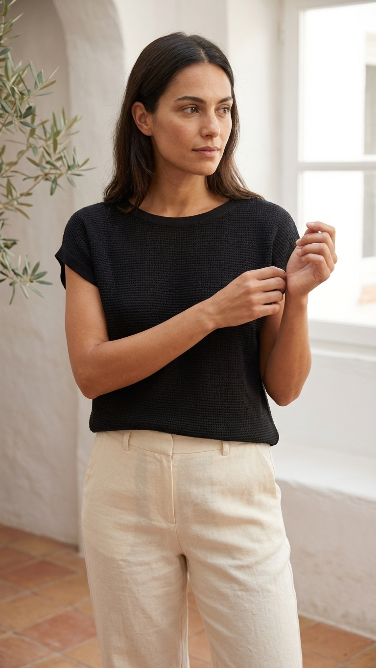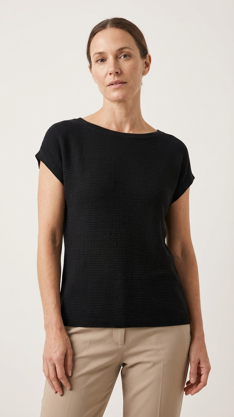 Polo Tejido en hilo de algodón – Cuello redondo – Negro