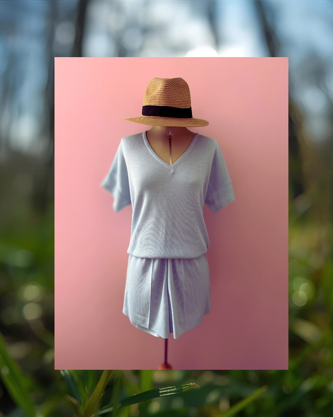 Set Polo y Short tejidos en hilo de algodón- Celeste – Talla S