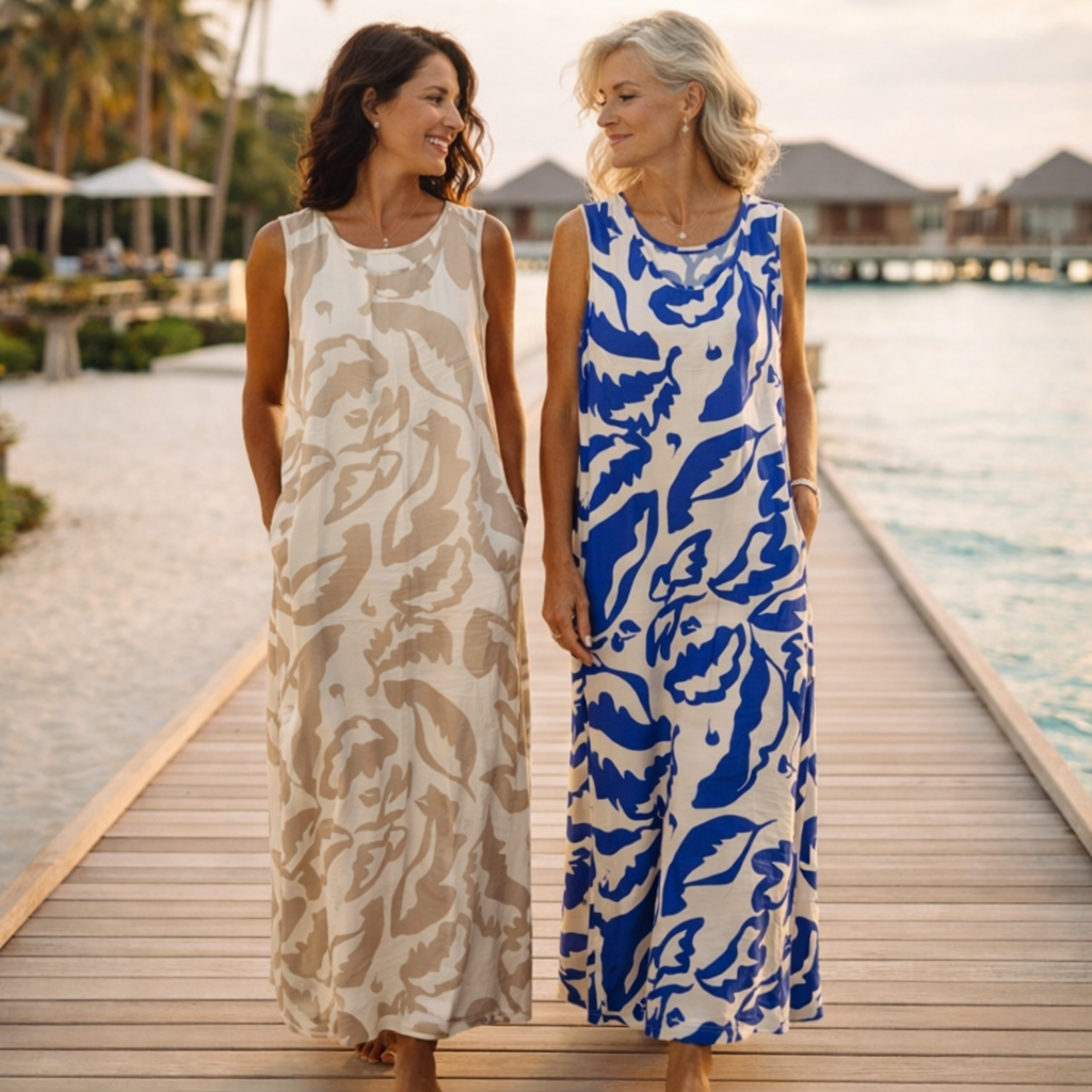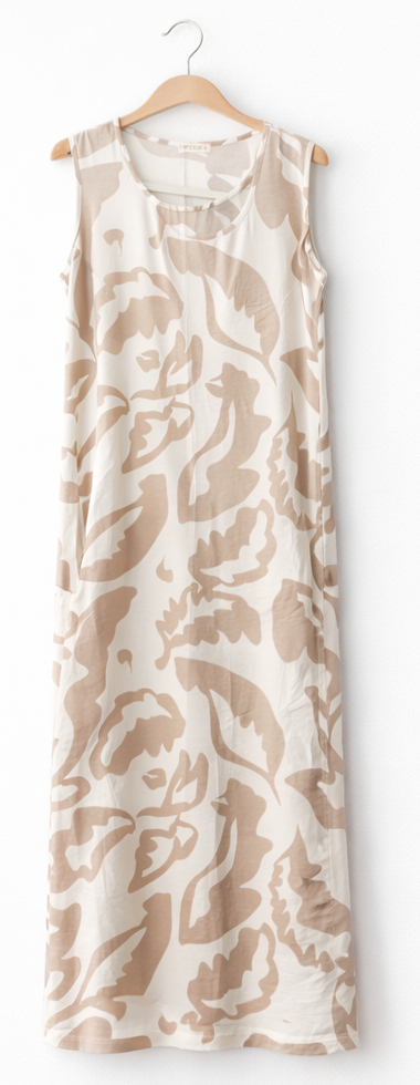 Vestido Maxi con bolsillos, color crema.Ideal para resorts, almuerzo o comida en la playa, siéntete cómoda siempre. Talla única; ideal M y L.